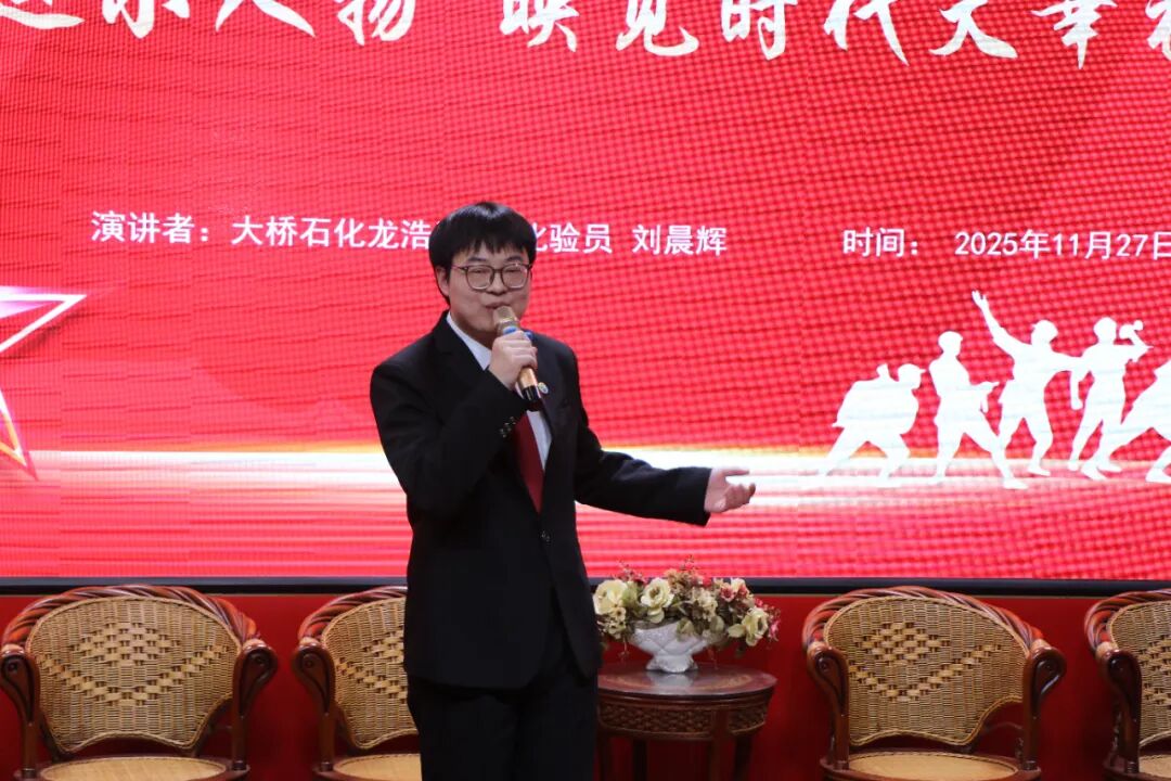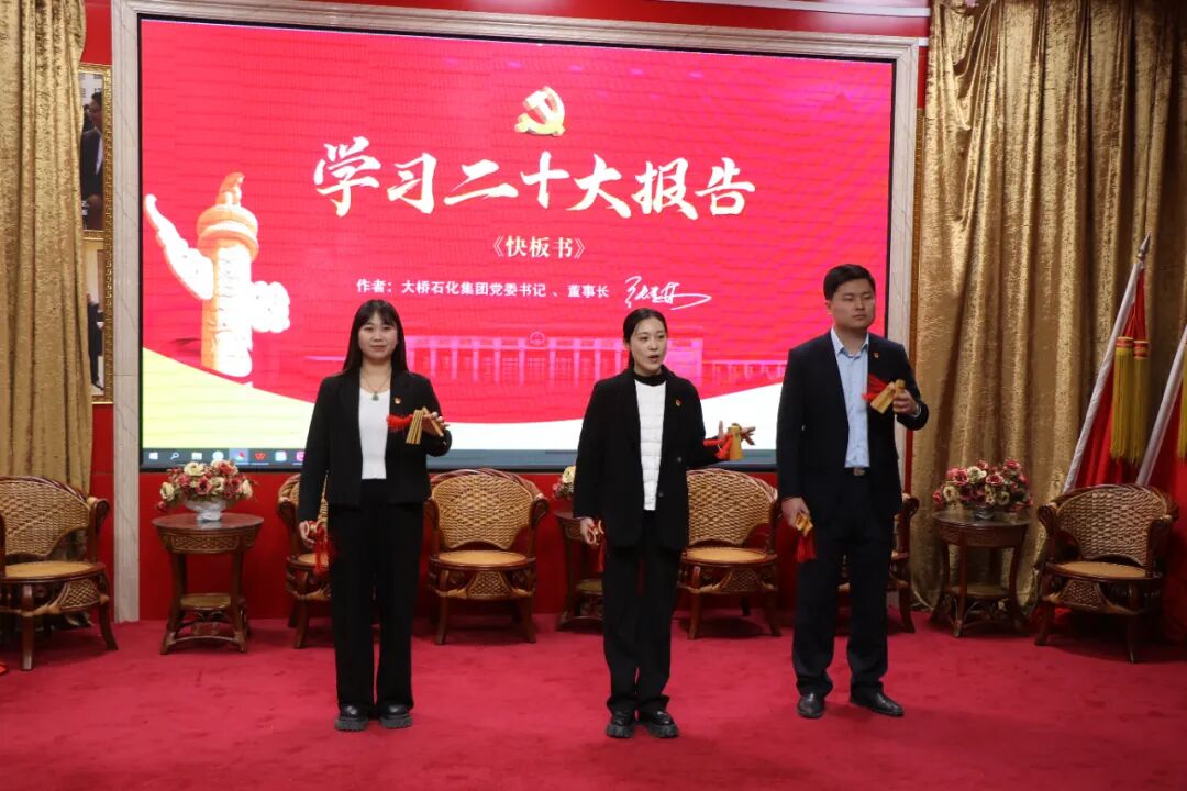 在党建好声音演播大厅,学员们集中观看大桥石化党建宣传片《党建铸就大桥魂》和大桥石化《25周年专题片》,大桥石化党委龙浩油库支部刘晨辉的演讲《幸运小人物映见时代大幸福》,让大家感悟到生活在今天和平年代的幸福是如此珍贵。大桥石化党委文艺小分队带来的《学习二十大快板书》表演,将参观学习活动推向高潮。大桥石化党委书记、董事长张贵林的微党课《民营企业的初心与使命》视频演讲,回答了为什么抓党建,怎样抓党建,抓党建的作用等一系列深刻道理,学员们深深感受到作为民营企业的大桥石化党建工作开展的如此丰富。活动最后,在工作人员的介绍下,大家纷纷拿出手机扫描桥桥小程序二维码领取优惠券并关注了大桥石化红色家园微信公众号。