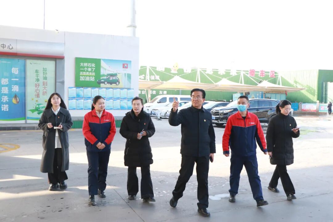 为高标准、高质量备战观摩会,落实践行好集团党委书记、董事长张贵林干中学、学中悟、悟中干的“三中”理念,提高管理能力,推动党建工作与生产经营在基层一线深度融合、互促共进。2025年12月6日下午,大桥石化集团党委副书记冯江新带领党办工作人员,深入基层一线,前往郑州北片区中澳加油站、兴隆加油站开展党建下基层督导活动,精准查摆问题、现场指导整改,为加油站提质增效,以最优状态迎接观摩会注入红色动能。