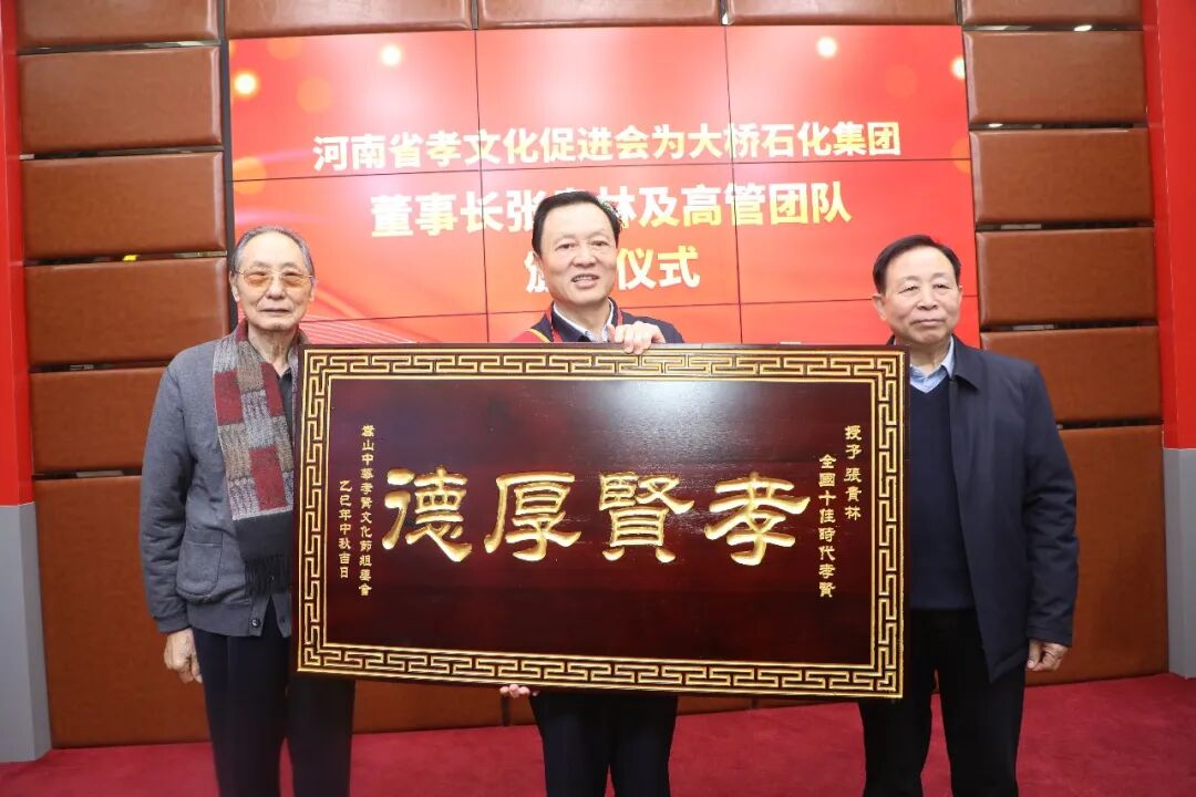 活动中,大桥石化集团党委书记、董事长张贵林以其躬身践行的孝德风范与家风引领,被授予“时代孝贤”荣誉称号。此外,大桥石化集团副董事长侯振荣、总裁张斌、副总裁余贵军等10名大桥石化高管以在日常工作与生活中彰显的孝行善举,获评“2025年度孝贤之星”。