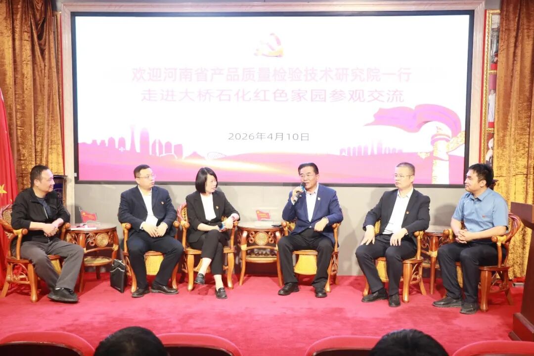 2026年4月10日下午,河南省产品质量检验技术研究院一行近20人,在纪委书记赵明慧的带领下走进大桥石化红色家园参观学习,大桥石化党委副书记、副总裁冯江新带领党办工作人员热情接待,大桥石化郑州公司副经理任常春全程陪同。