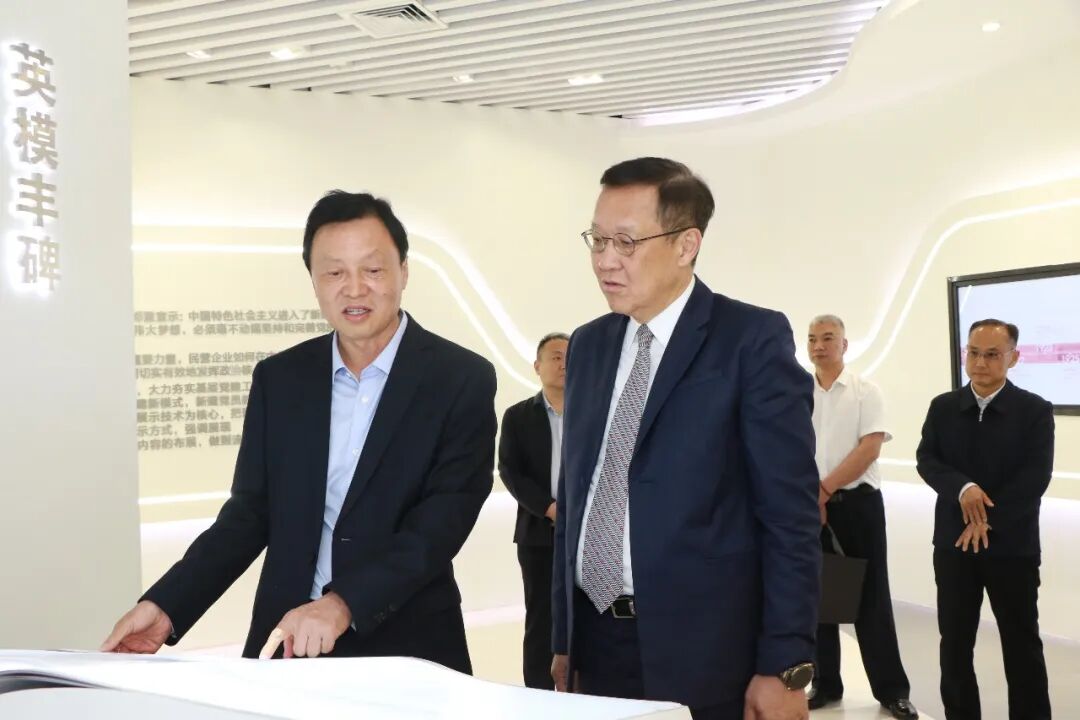 在张贵林书记的亲自引领下,介文汲先生一行依次参观大桥石化红色家园教育基地的各个展馆。党建展馆中,“党建做实了就是生产力,做强了就是竞争力,做细了就是凝聚力”的“三力”经验,瞬间吸引了介先生的目光。他停下脚步,仔细端详每一件展品,认真聆听张书记的介绍,深入了解大桥石化的发展理念。从企业发展三部曲到“三型”党组织建设,从特色党建工作法到张贵林书记原创诗歌、快板书,从丰富的红色书刊到由大桥石化党委编制,郑州市市场监督管理局发布实施的地方标准《非公企业党建工作规范》,每一处展示都生动诠释着“党建强则企业强”的深刻内涵,让介先生对民营企业红色党建有了全新的认识和深刻的感悟。